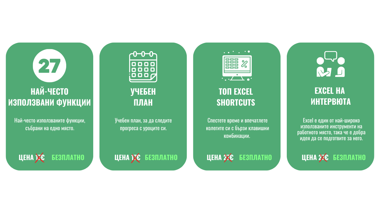 Ще се запознаете подробно с всички най-важни функции на Excel. Ще разберете как и кога да ги използвате на практика, за да правите точни и навременни анализи.