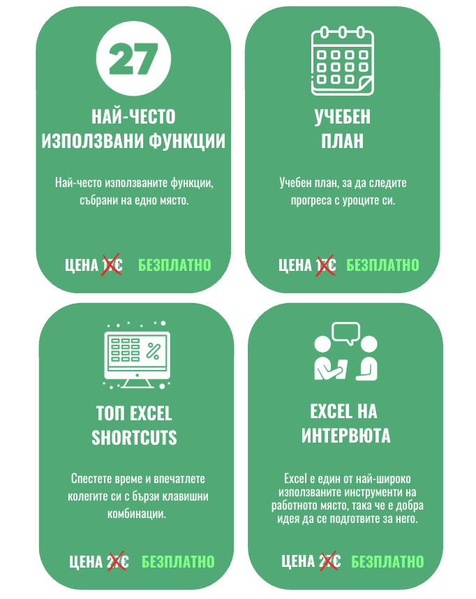 ! Това специално предложение е достъпно само за участници в Безплатния ми Урок. Възползвайте се от него – то ще ви напътства от първите ви стъпки до Ексел Нинджа!